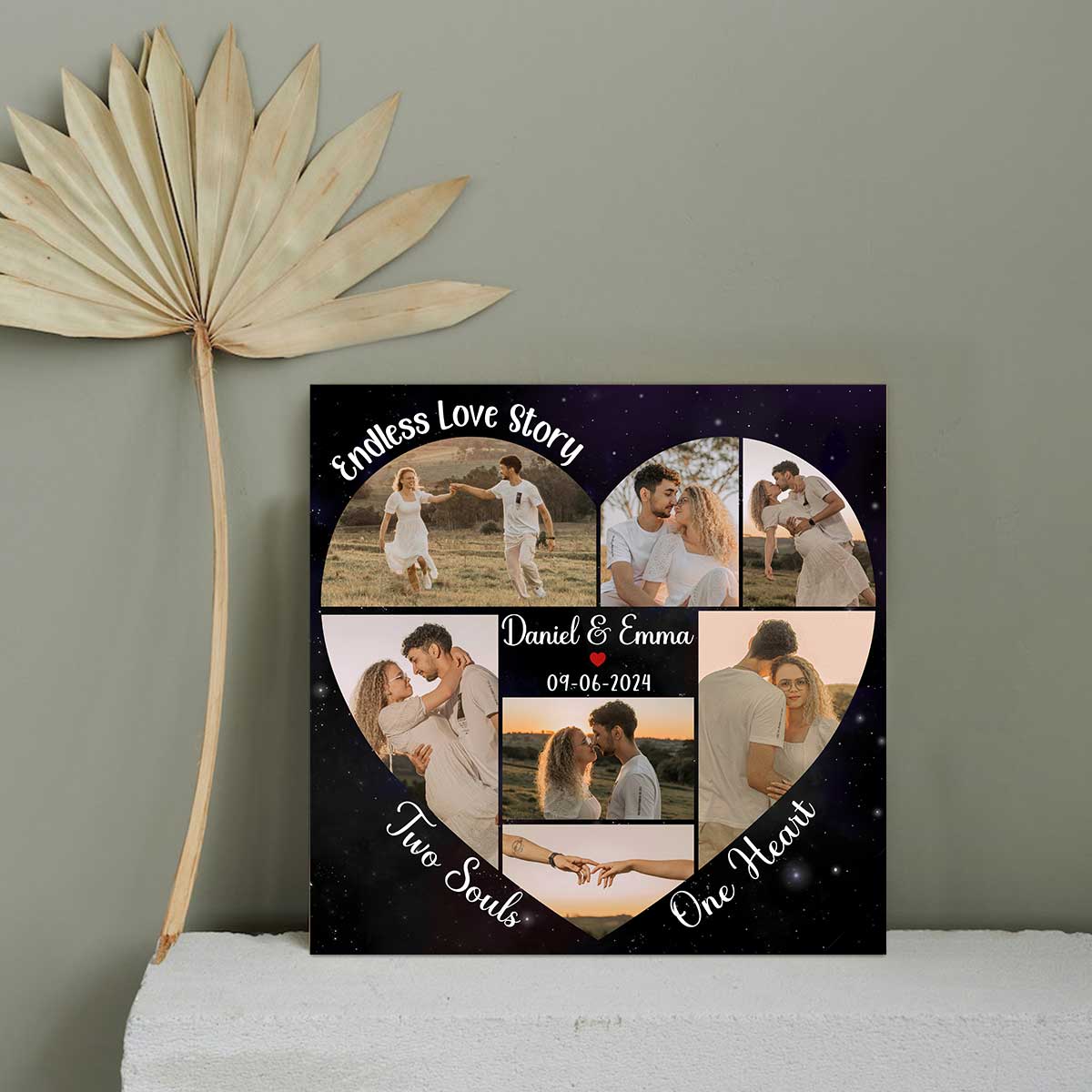Personalized Heart Shape Photo Collage Canvas, Valentines Day Collage Gift, Creative Wedding Anniversary Gifts, Custom Square Canvas for Couples